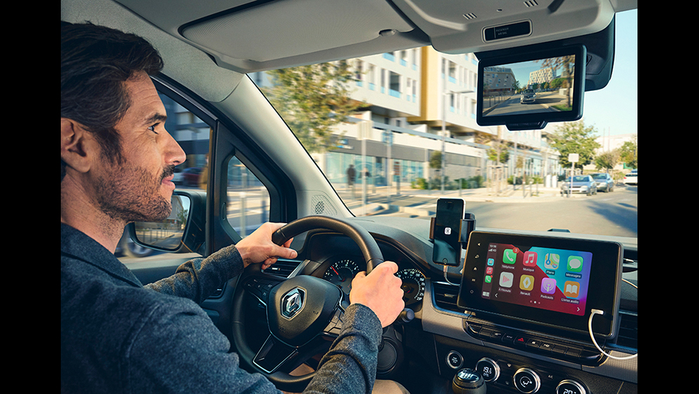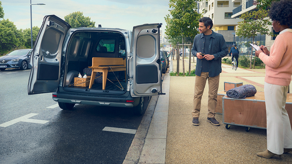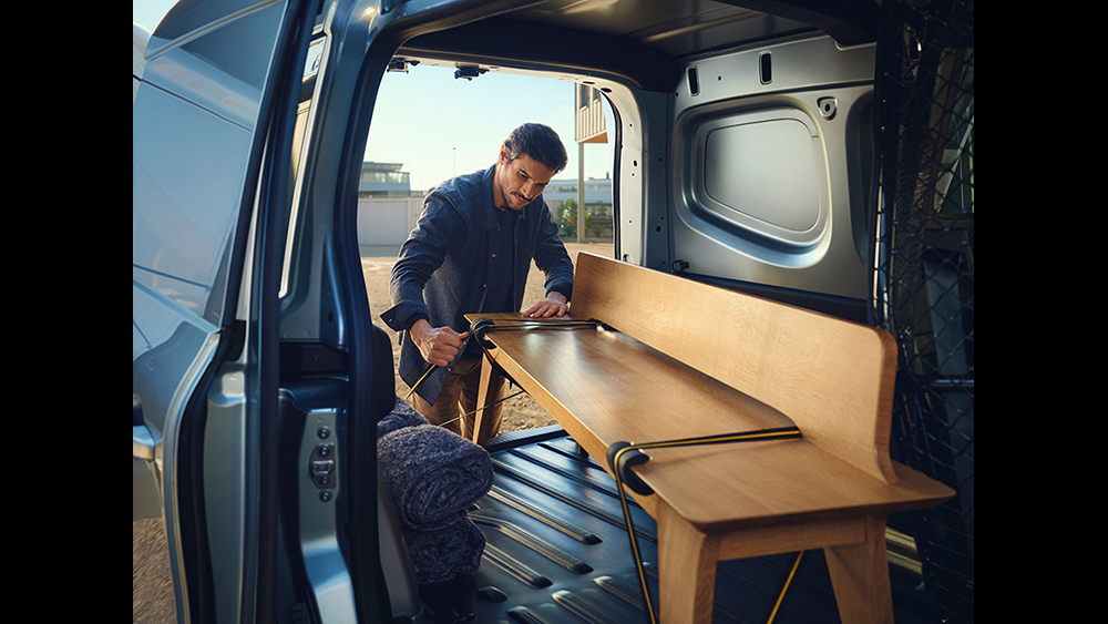 The all-new KANGOO VAN has more modern, upgraded interior. The horizontal dashboard creates a sense of continuity through to the door panels. The fully redesigned seats are more hard-wearing than before. Comfort inside the cabin is heightened by additional sound proofing making for a quieter, less fatiguing driving experience. Designed with practicality in mind, the cab has 60 litres of storage compartments, making it the leader in its category. A new feature: the cab now has enough space for three full seats! The 3-seater version is even more practical, with 60 litres of storage space, making it the leader in its category.